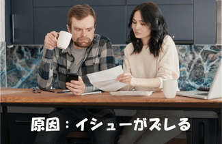 イシューは正確に掴めているつもりでも、ズレていることが多々あります。それはあなたのリスニング力の問題だけでなく、相手に問題があるケースもあります。例えば「〇〇の解決策を考えましょう」と言っていたのに、実際には「〇〇の原因分析を先にするつもり」とイシューを言葉にしていない事があります。なので、イシューの把握に不安のある方は「必ず作業や主張をする前」に「〇〇について作業すればいいですか?」「いまの論点は〇〇で合っていますか?」とイシューを確認してください。