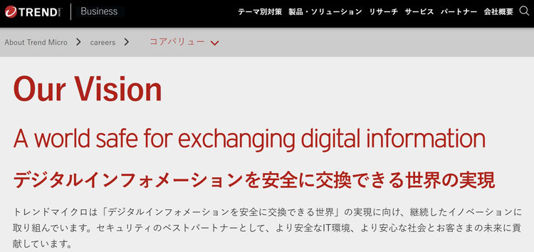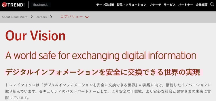 ちなみに、社員の方がこのVisonを連呼するので、取引先である私も自然にこの言葉を覚え、使うようになりました。そして、トレンドマイクロへのご提案(例えば社員研修の企画)に「Visonを少しでも体現した企画にしよう」と工夫をするのです。